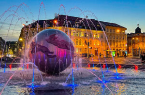 Vo fontáne mieru je 240 L plastová odpadová nádoba na plásty a okolo je plno kamier ,to ste už mali mať aj vinníka chyteného a nie sa ešte pozerať ako si to tu obzerajú turisti !